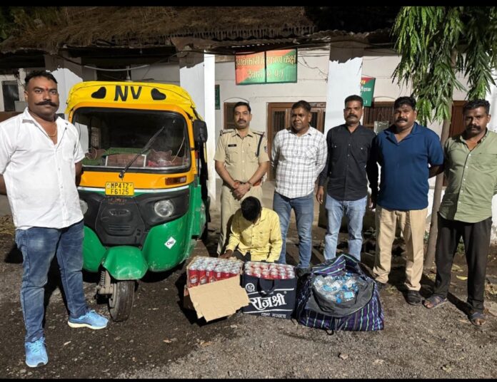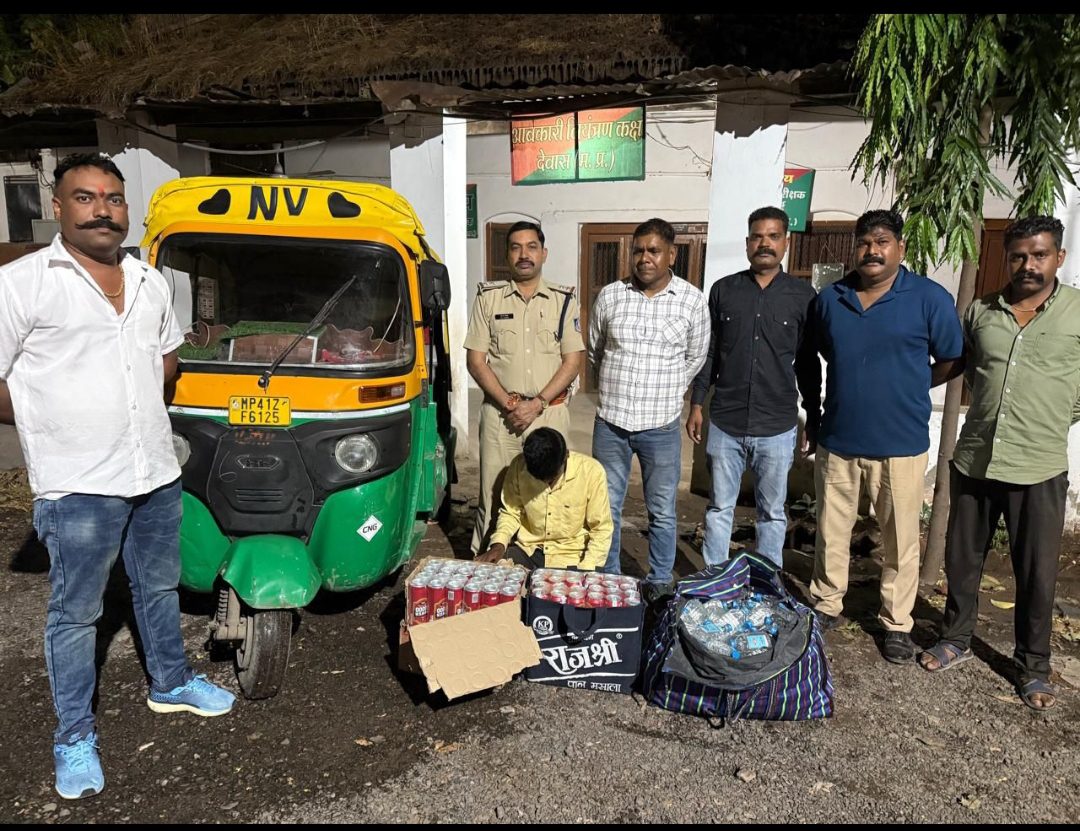 INFORM HUMAN. देवास। कलेक्टर ऋतुराज सिंह के निर्देशन तथा सहायक आबकारी आयुक्त मंदाकिनी दीक्षित के मार्गदर्शन में आबकारी देवास द्वारा अवैध मदिरा के निर्माण, विक्रय एवं परिवहन करने वालों के विरुद्ध लगातार कार्रवाई की जा रही है। इसी के तहत मुख़बिर सूचना के आधार पर आबकारी उपनिरीक्षक प्रेम यादव द्वारा कार्रवाई की गई। विभाग से जारी प्रेस नोट के मुताबिक देवास इंदौर बाईपास पर जेल चौराहे के पास एक ऑटो क्रमांक एम पी 41 जेड एफ 6125 को रोककर तलाशी लेने पर ऑटो से 200 पाव देशी मदिरा प्लेन एवं 96 केन विदेशी मदिरा बियर कुल 84 बल्क लीटर देशी/विदेशी मदिरा बरामद हुई, जो चालक द्वारा अवैध रूप से संग्रह कर परिवहन किए जाने से उसके विरुद्ध मध्य प्रदेश आबकारी अधिनियम के 1915 की धारा 34(1) क एवं 34(2) के तहत एक प्रकरण दर्ज कर विवेचना में लिया गया है,तथा चालक को गिरफ्तार किया गया, जब्त मदिरा एवं वाहन की कीमत लगभग 227000 रुपये है ।