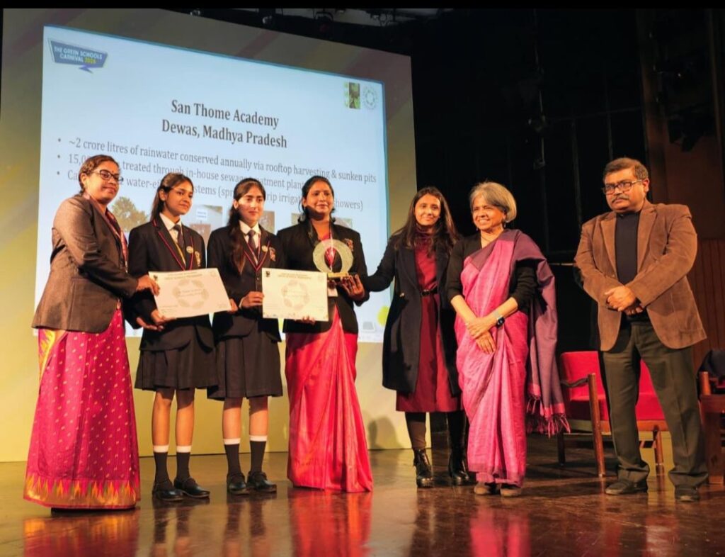 Inform human, Dewas। भोपाल रोड स्थित सेन थॉम एकेडमी को सेंटर फॉर साइंस एंड एनवायरनमेंट (CSE), नई दिल्ली द्वारा लगातार दूसरे वर्ष पुनः ‘ग्रीन स्कूल’ के रूप में सम्मानित किया गया है। इसके साथ ही विद्यालय को जल संरक्षण और प्रभावी जल प्रबंधन के क्षेत्र में उल्लेखनीय योगदान के लिए प्रतिष्ठित ‘GSP वॉटर वाइज अवॉर्ड’ से भी सम्मानित किया गया है। यह उपलब्धि पर्यावरण संरक्षण और सतत विकास के क्षेत्र में विद्यालय की अग्रणी भूमिका को दर्शाती है।